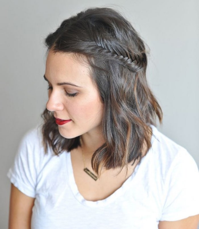 Coiffure asymétrique avec une tresse latérale délicate.