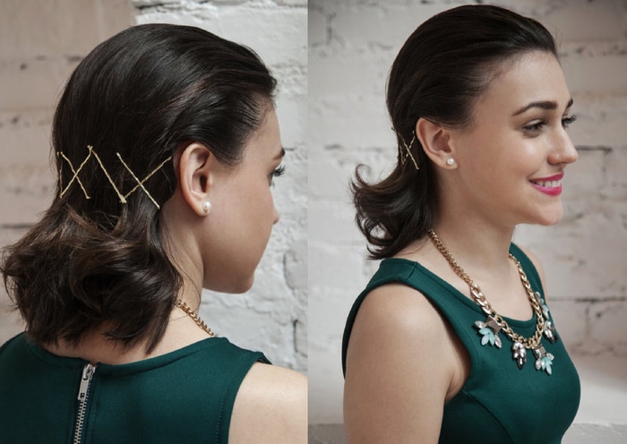 Pliez une partie des cheveux sur le côté et faites le fer à friser ondulé. Lisser les cheveux restants à l’aide d’une crème stylisante.