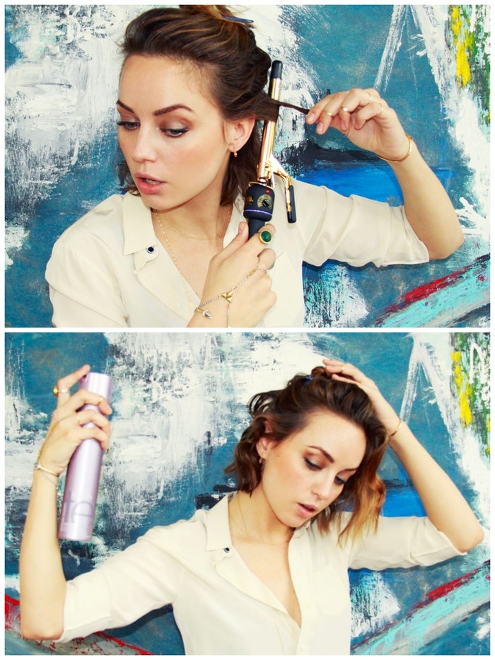4. Vaporiser les cheveux avec du vernis pour maintenir la coiffure et lui donner un rendu brillant.